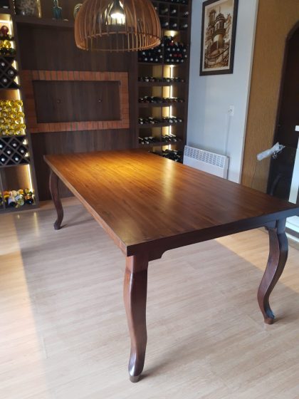 Mesa de jantar clássica com pés de madeira estilo Luiz XV