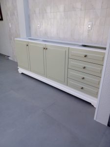 ConfiraBalcão para cozinha com portas e gavetas alto-relevo