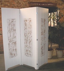 ConfiraBiombo três painéis com detalhes em corte e centro estonado